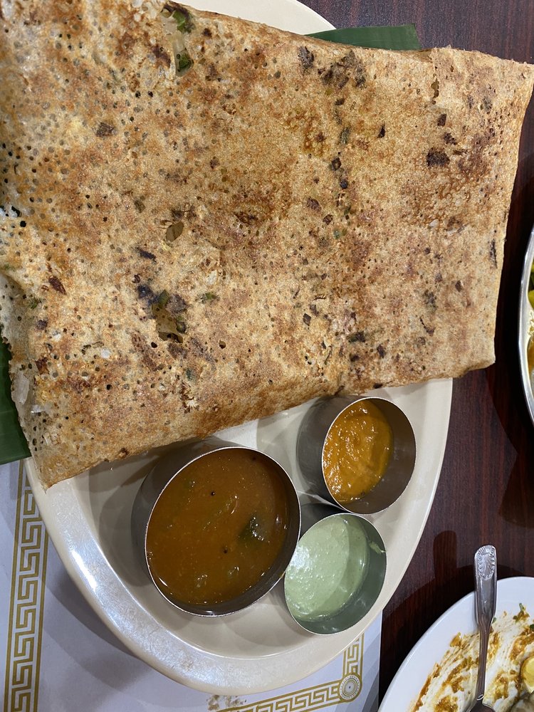 Whole wheat crepe cooked onion and chili w/ potato masala